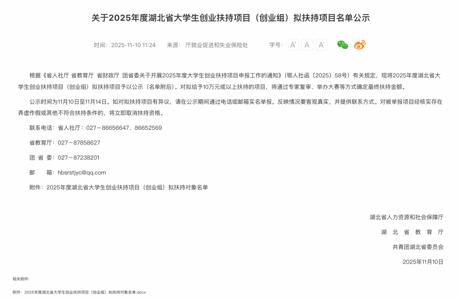关于开展2026年度大学生创业扶持项目申报工作的通知各学院:为深入贯彻习近平总书记关于就业工作的重要...