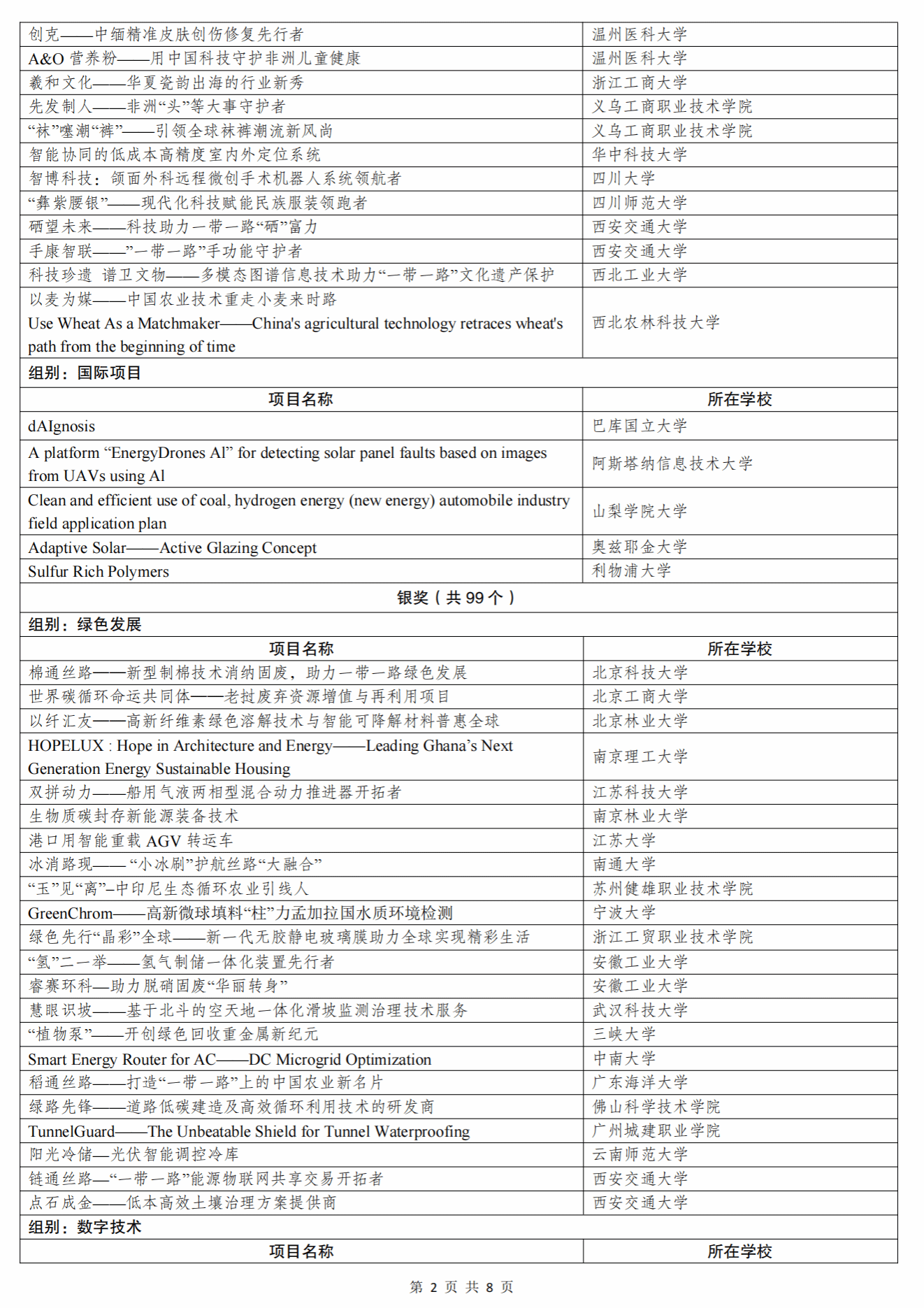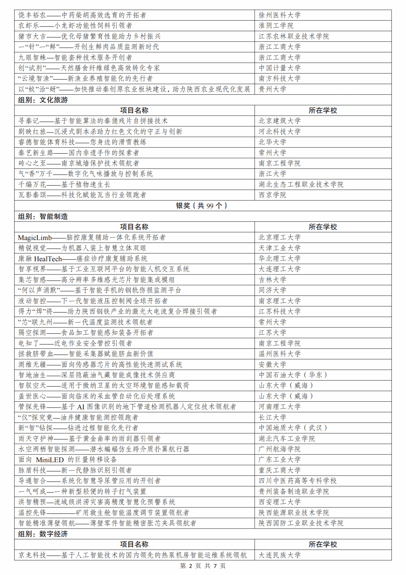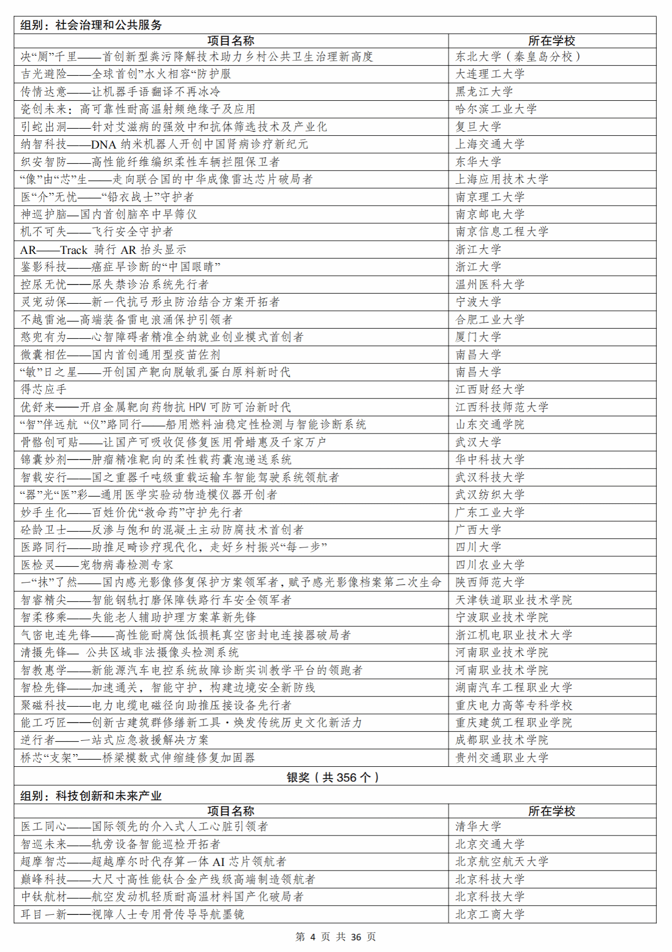根据《关于举办第十四届“挑战杯”中国大学生创业计划竞赛的通知》和章程有关要求,经过校级初赛、省级复赛、全国决赛初评、全国决赛终评等环节,共评选产生主体赛金奖项目180个、银奖项目356个、铜奖项目1262个,“一带一路”国际邀请赛金奖项目50个、银奖项目99个、铜奖项目151个,“秦创原”创新挑战赛金奖项目50个、银奖项目99个、铜奖项目151个。名单如下(以下排名不分先后)。